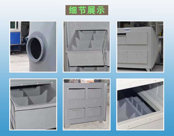 设备采用PP材质(可选用不锈钢)制作,能够有效防止有腐蚀或带酸碱的气体对设备造成损害,设备使用寿命长。