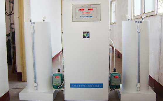 E、设备的自动控制系统采用国内外知名品牌的PLC,智能型工业人机界面。功能更加强大,除具备IDF-II所有的功能以外,触摸式液晶显示屏可动态显示设备运行的各种工艺参数(温度、压力、液位、投加量、出水余氯及进水流量等),并可进行手动和自动模式的相互切换。可接受4-20mA的标准出水余氯和进水流量信号,实现余氯和流量的在线闭环控制通讯单元配备标准的485通讯接口、modbus、TCP/IP通讯协议接口,可以接入以太网远传主控室,监控设备的运行状态,实现和上位机的远传通讯功能。